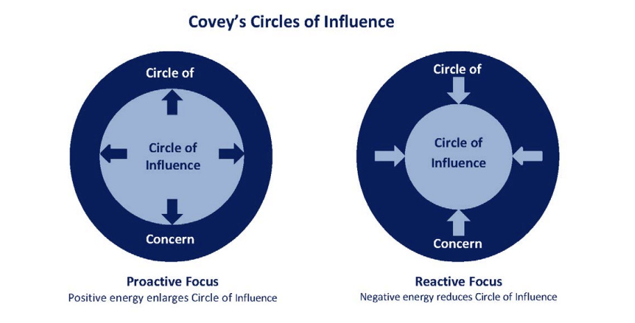 In his book, The 7 Habits of Highly Effective People (1989), Stephen Covey distinguishes between proactive people — who focus on what they can do and what they can influence — and reactive people, who focus their energy on things beyond their control.